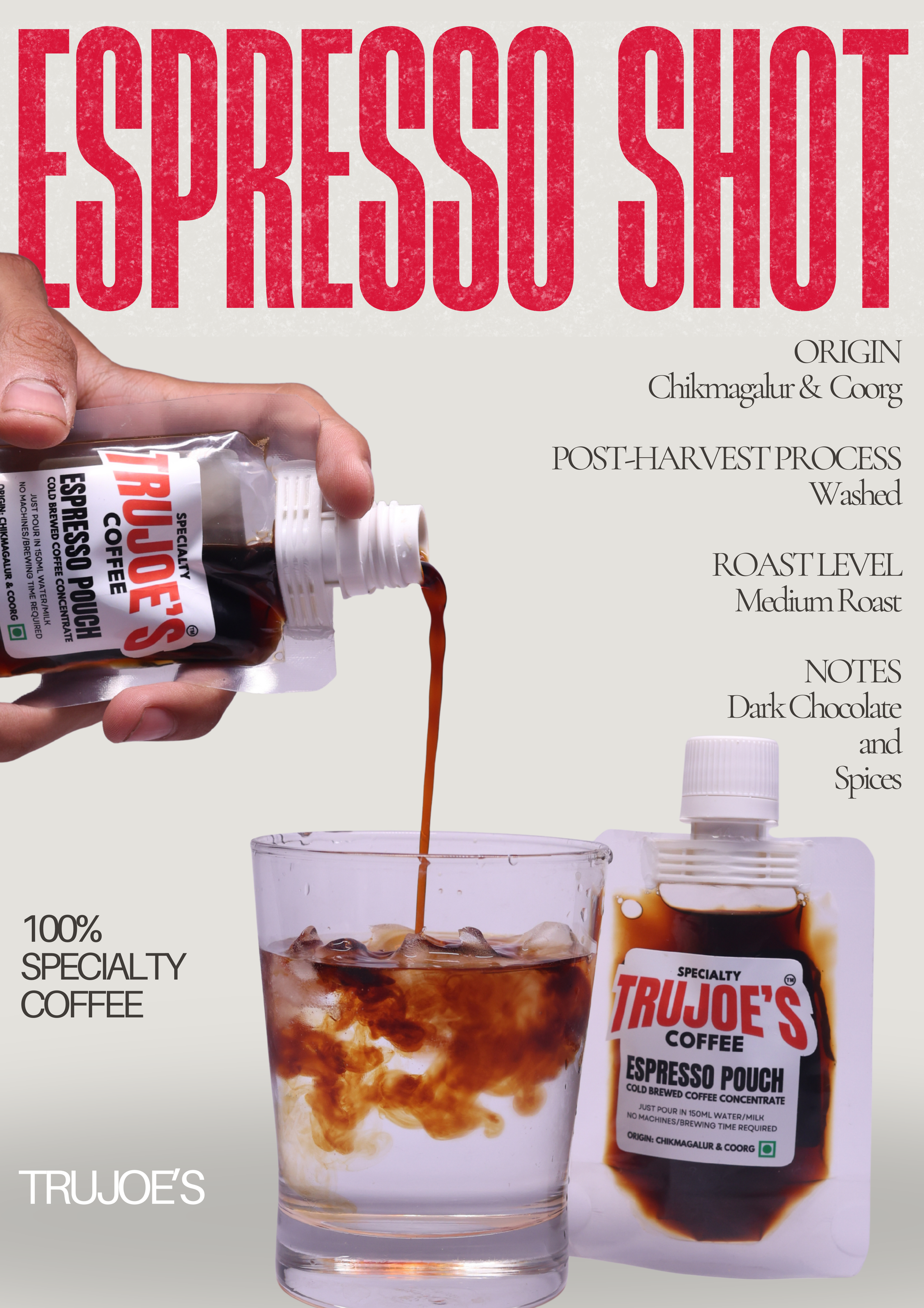 Trujoe’s Espresso Shot brings true specialty coffee to your pocket. Brewed slow for over 18 hours shot delivers a clean, smooth kick of 115mg natural caffeine, without much bitterness or acidity.